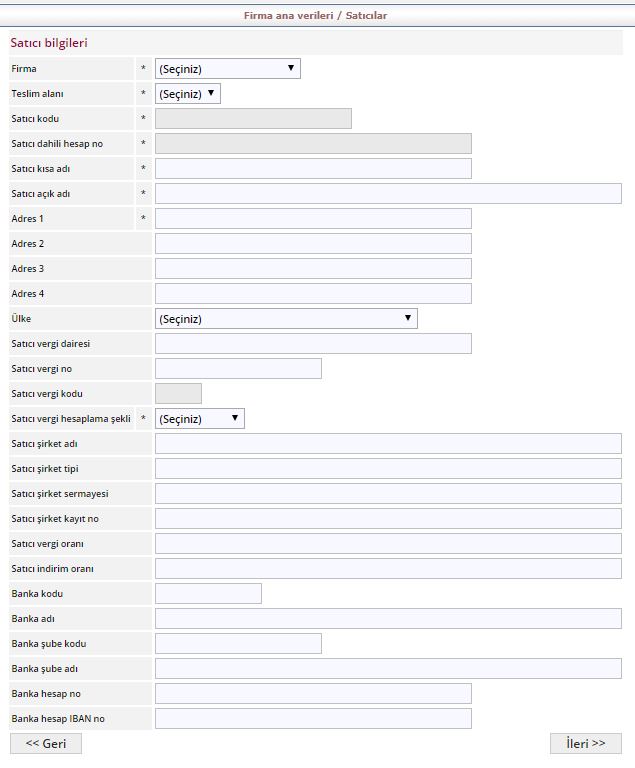 Satıcı firma eklenmek istendiğinde Yeni ikonuna basılır ve gelen ekranda gerekli bilgiler doldurulduktan sonra gönder butonu ile