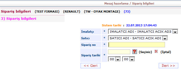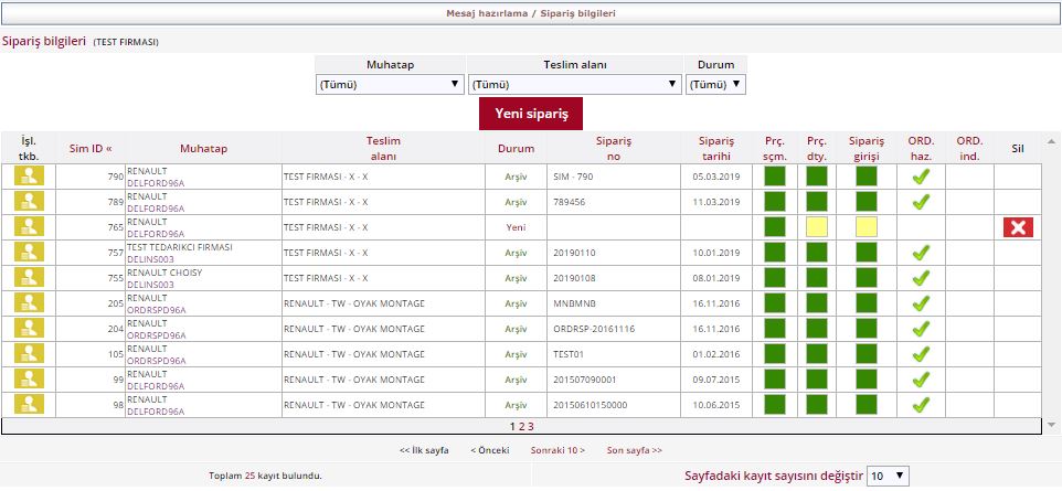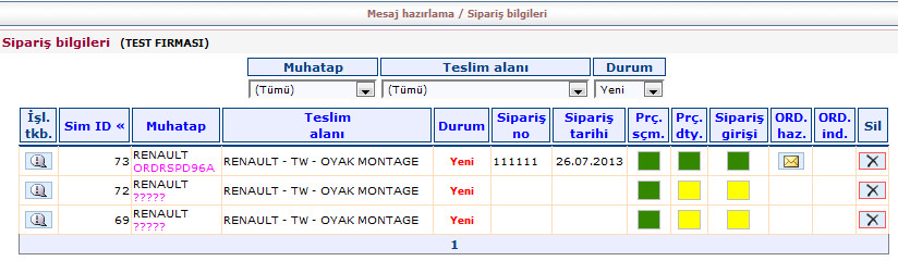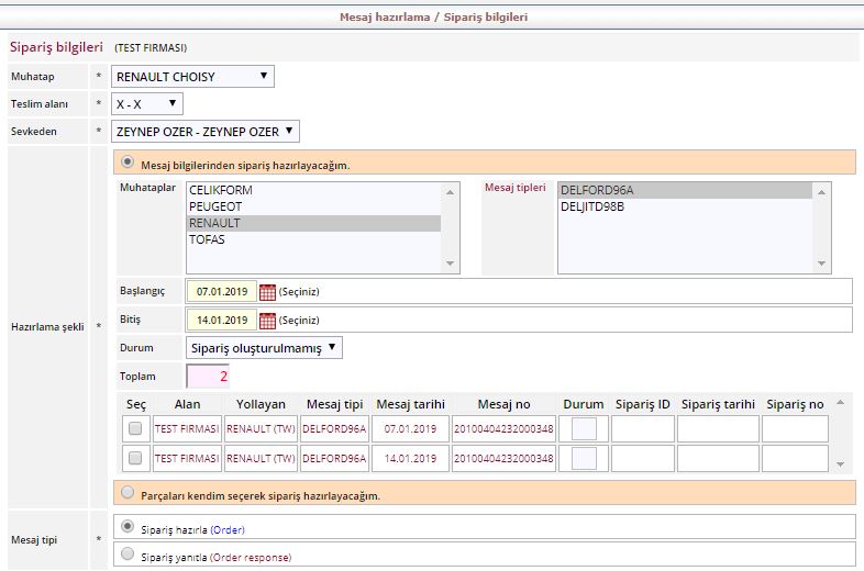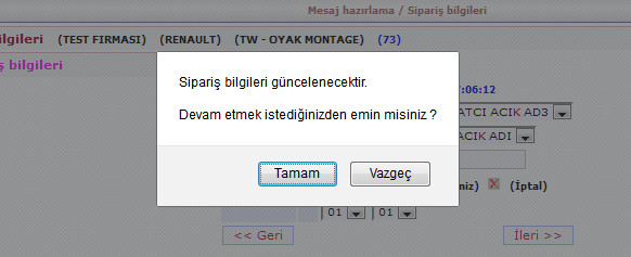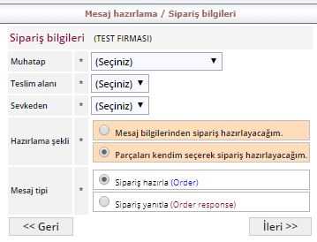 Mesaj bilgilerinden sipariş hazırlayacağım derseniz daha önce oluşturduğunuz siparişler ekrana gelecekitr. Uygun siparişi seçerek ilerleyiniz.